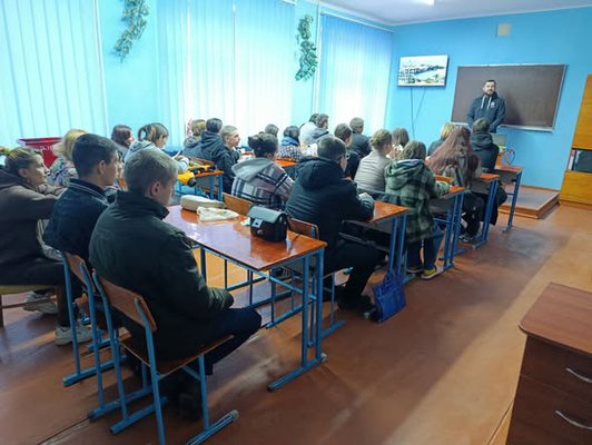 Викладач ПДР Іван Мясніков разом із медичною сестрою Валентиною Грушак провели урок, під час якого просто й доступно пояснили правила дорожнього руху, причини ДТП та їхні наслідки.