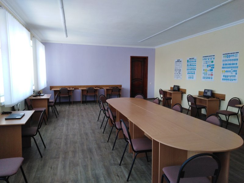 Оснащення: 11 стаціонарних комп'ютерів забезпечують стабільну та високопродуктивну роботу під час теоретичних занять та лабораторних робіт.