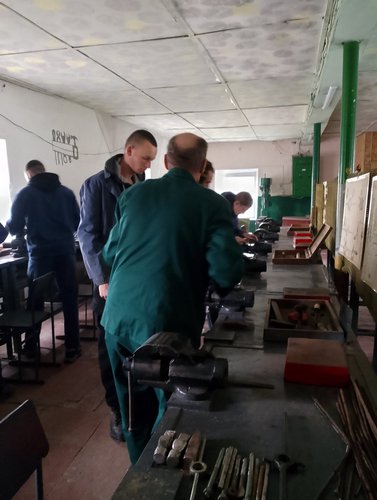 Під час практичного туру виконували нарізання різьби діаметром М8, М10, М12, обпилювання заготовок під молотки з шести площин із заокругленням.
