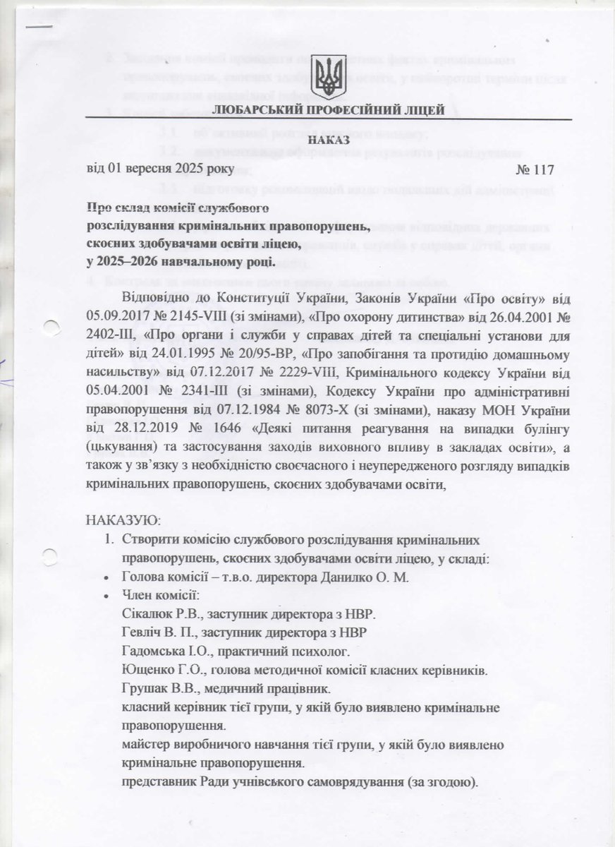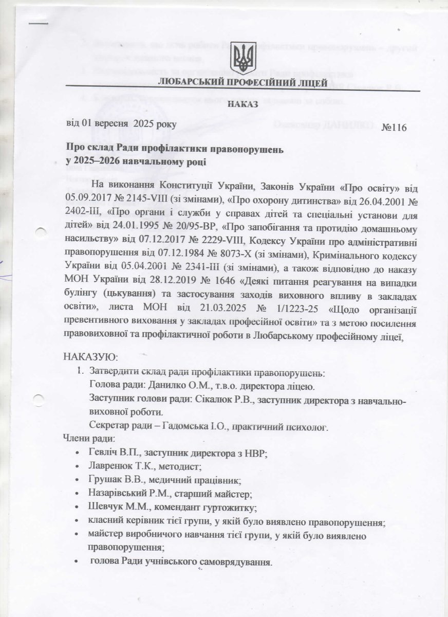 Підсумки місячника правовиховної роботи у Любарському професійному ліцеї 🔹