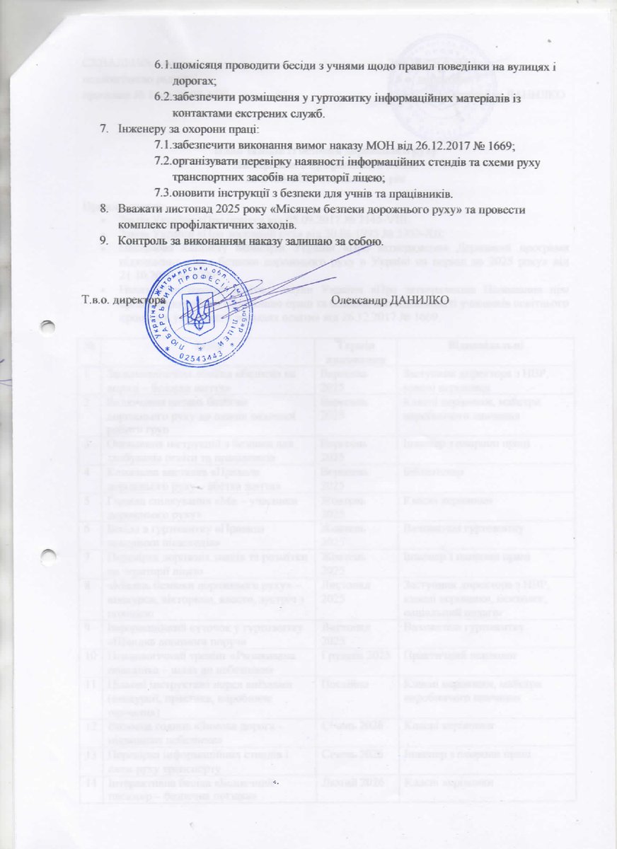 Під час виховних годин обговорювалися актуальні питання безпеки у закладі освіти та поза його межами. Особливу увагу приділили темі запобігання терористичним актам, методам виявлення підозрілих об'єктів та осіб, а також заходам безпеки у надзвичайних ситуаціях.